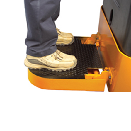 The DPP 22/30 are five wheeled pallet truck with a spring loaded centre positioned drive unit. The tiller arm steering designed for easy control & comfort offers operator a superb steering control at all speeds. All controls are conveniently positioned on the steering handle for easy accessing by finger tip control by the operator. The end of the control head terminates with the push contact for emergency reverse brake switch.The tiller arm and obstacles behind, for instance a rack. When the contact is pressed, the motor reverses direction and the vehicle will move away from the operator